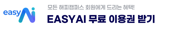 안녕하세요 해피캠퍼스의 20년의 운영 노하우를 이용하여 당신만의 초안을 만들어주는 EasyAI 입니다.