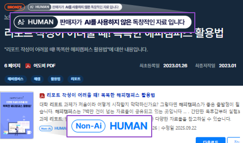 판매회원은 자료 판매 시 "사람이 쓴 자료"임을 표시할 수 있고