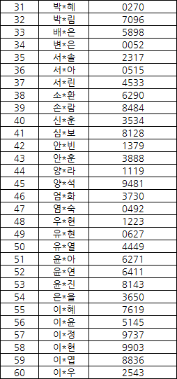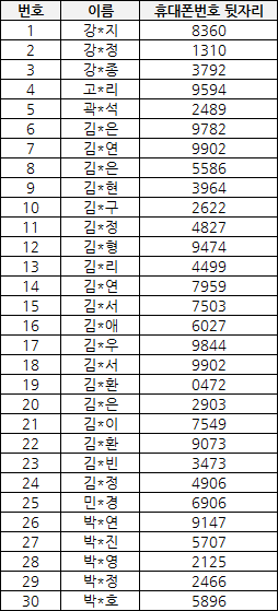 이벤트 당첨자를 아래와 같이 발표합니다.
